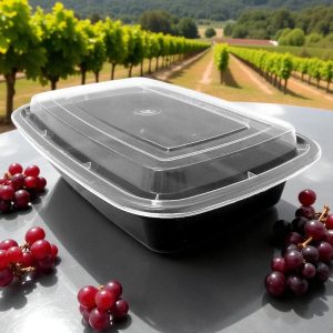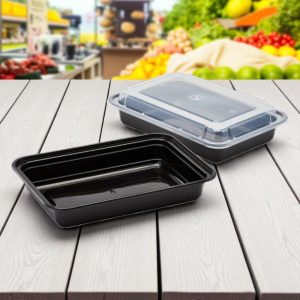 TK-RE 28 BLACK 28 OZ RECTANGLE BLACK CONTAINER WITH CLEAR LID COMBO 150/CS